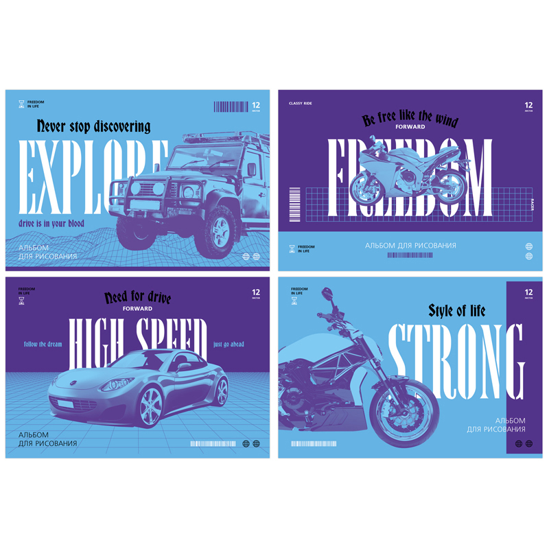 Альбом для рисования 12л., А4, на скрепке BG «Высокая скорость» АР4ск12 10903